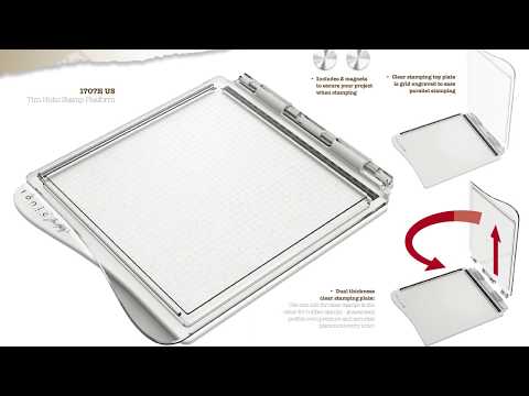 Stempel plattform fra Tim Holtz og Tonic Studios! Stempel verktøy som gjør at du kan få helt perfekte trykk på samme plass om igjen og om igjen. Verktøyet kan åpnes som en bok og har en akryl side som er festet med hengsler og et grid mønster og linjaler på den andre siden. Dette verktøyet har både en side for å feste clearstamps og en side til halvmonterte stempler. Platformen måler ca 21,6cm x 21,6cm.