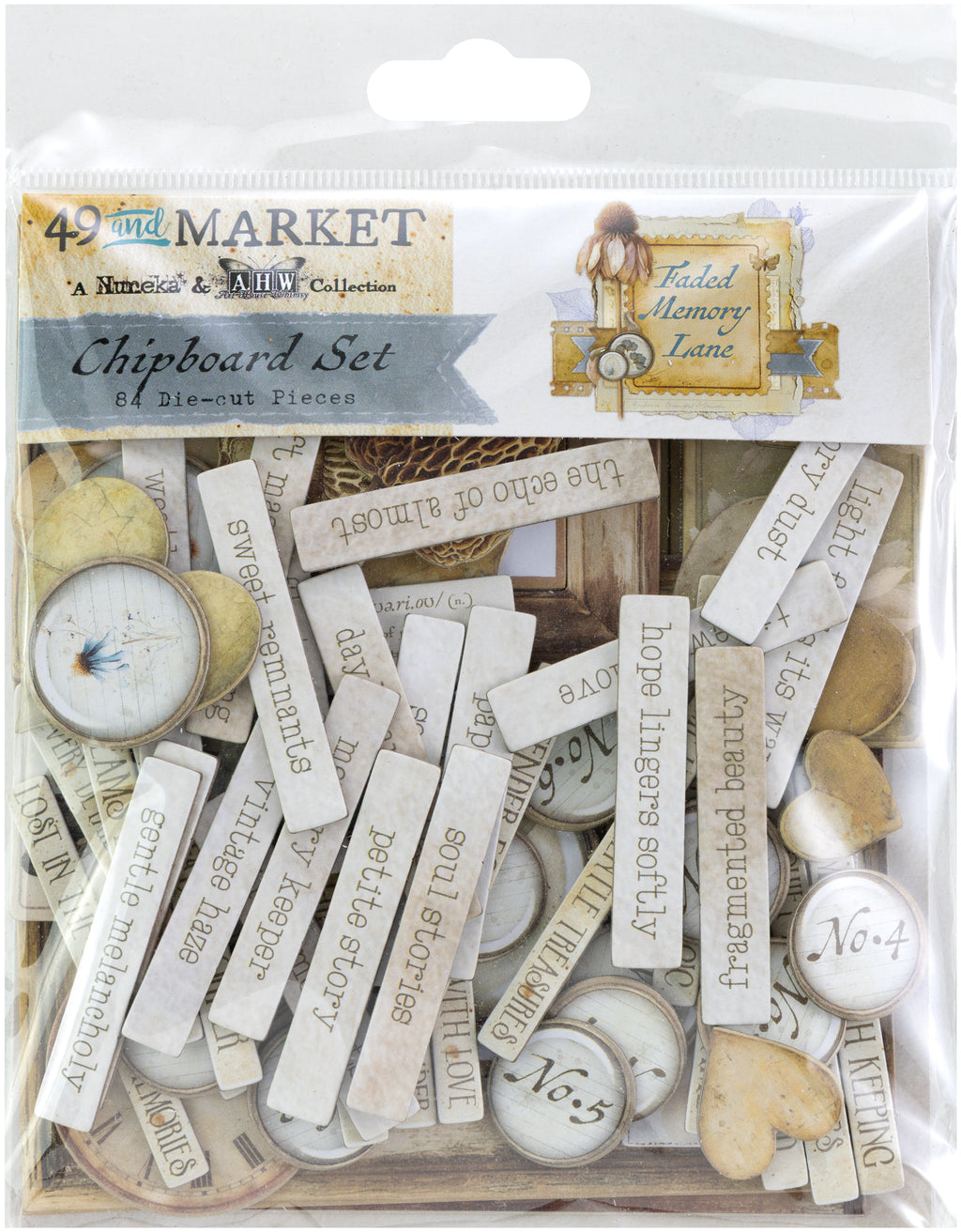 Pakke med chipboard i serien "Faded Memory Lane" fra 49 and Market.