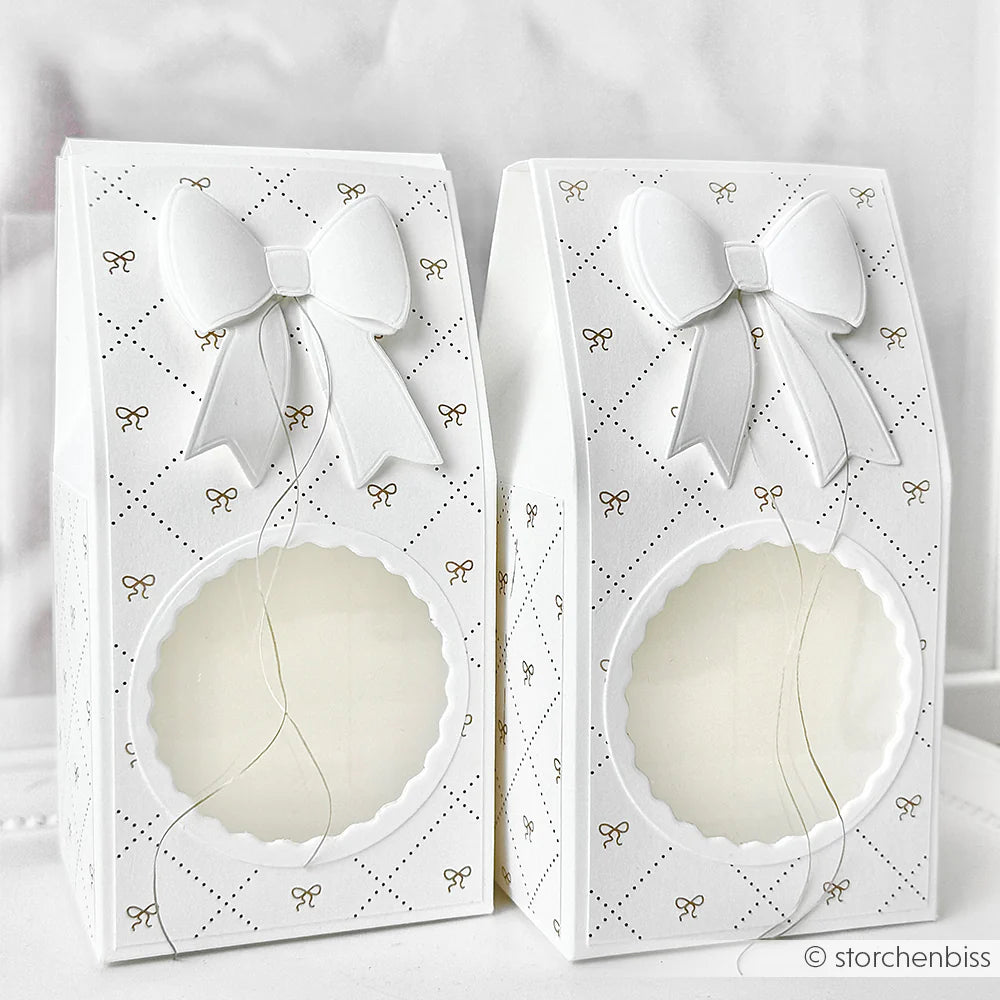 Embossingfolder med dies fra Alexandra Renke som både embosser og kutter ut sløyfene samtidig. Passer i de fleste moderne kuttemaskiner med det rette utstyret.