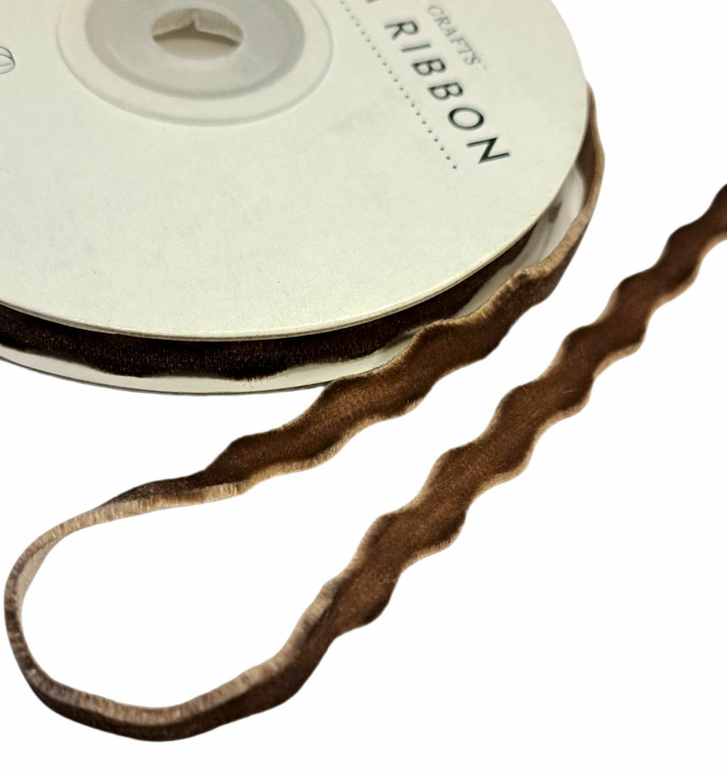 1 meter bånd fra American Crafts i brun fløyel. Båndet måler ca 1,0 cm i bredde.