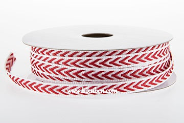 1 meter hvitt dekorbånd med rødt mønster. Båndet måler ca 0,7 cm i bredden.