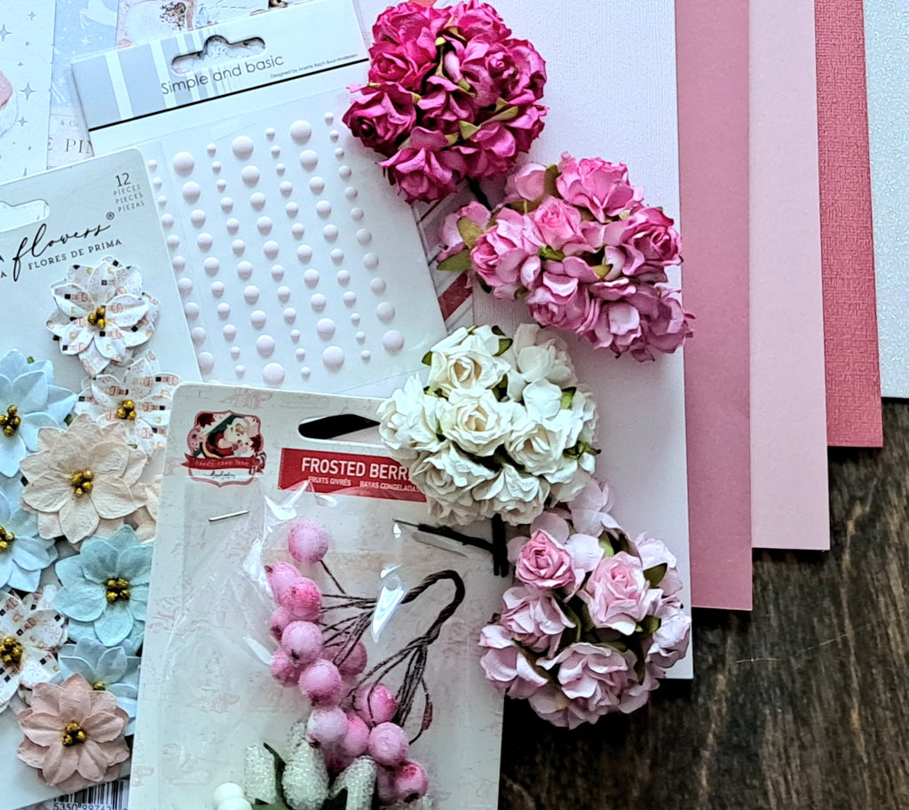 Vi har laget en pakke med rosa jul! Marchende kartong og mønsterark - blomster og bær og dots!
