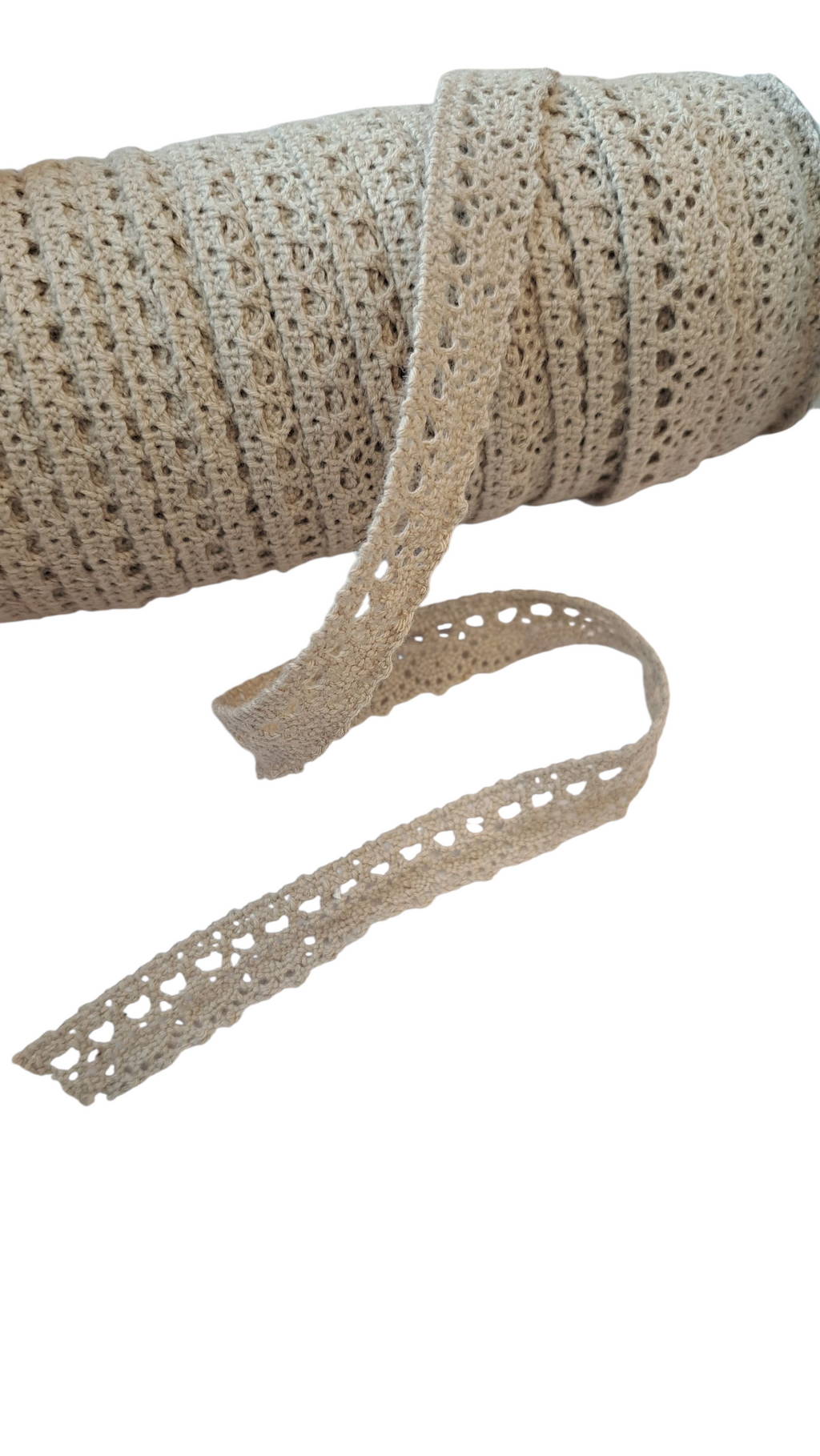 1 meter dekorbånd i lys grå/beige. Båndet måler ca. 2 cm i bredden.