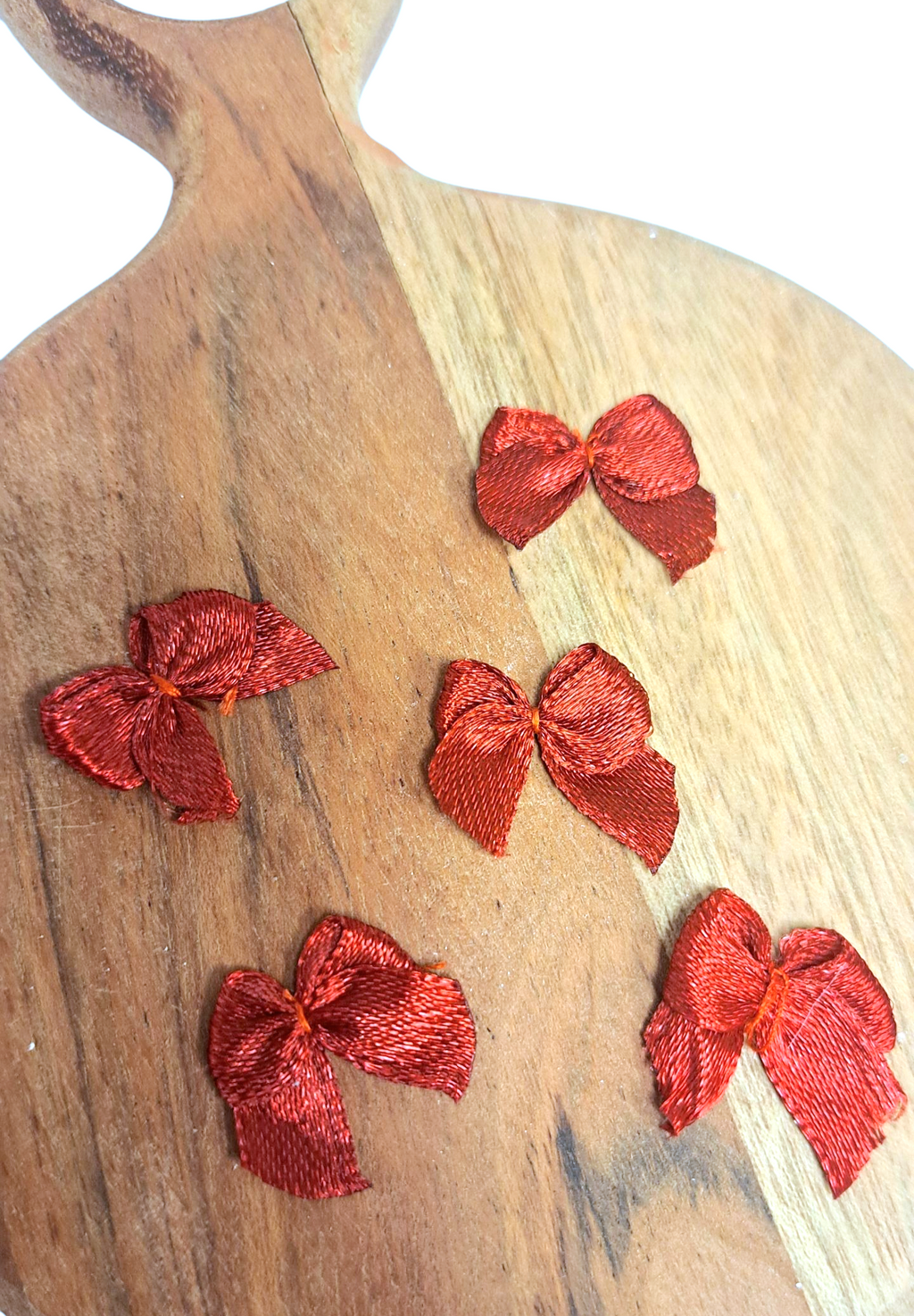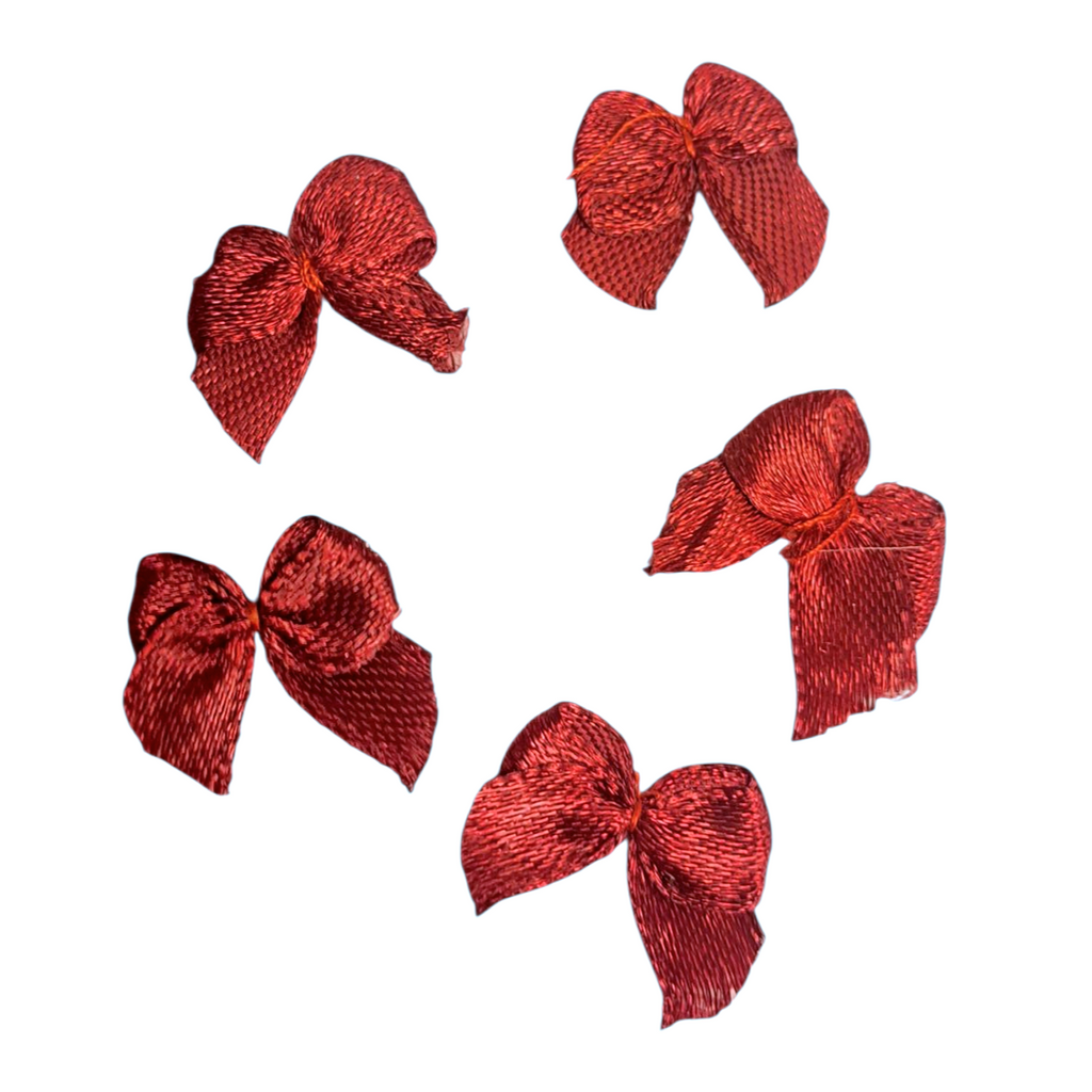 Små sløyfer i mørk rød - Pakke med 5 stk - Måler ca 2 x 2 cm