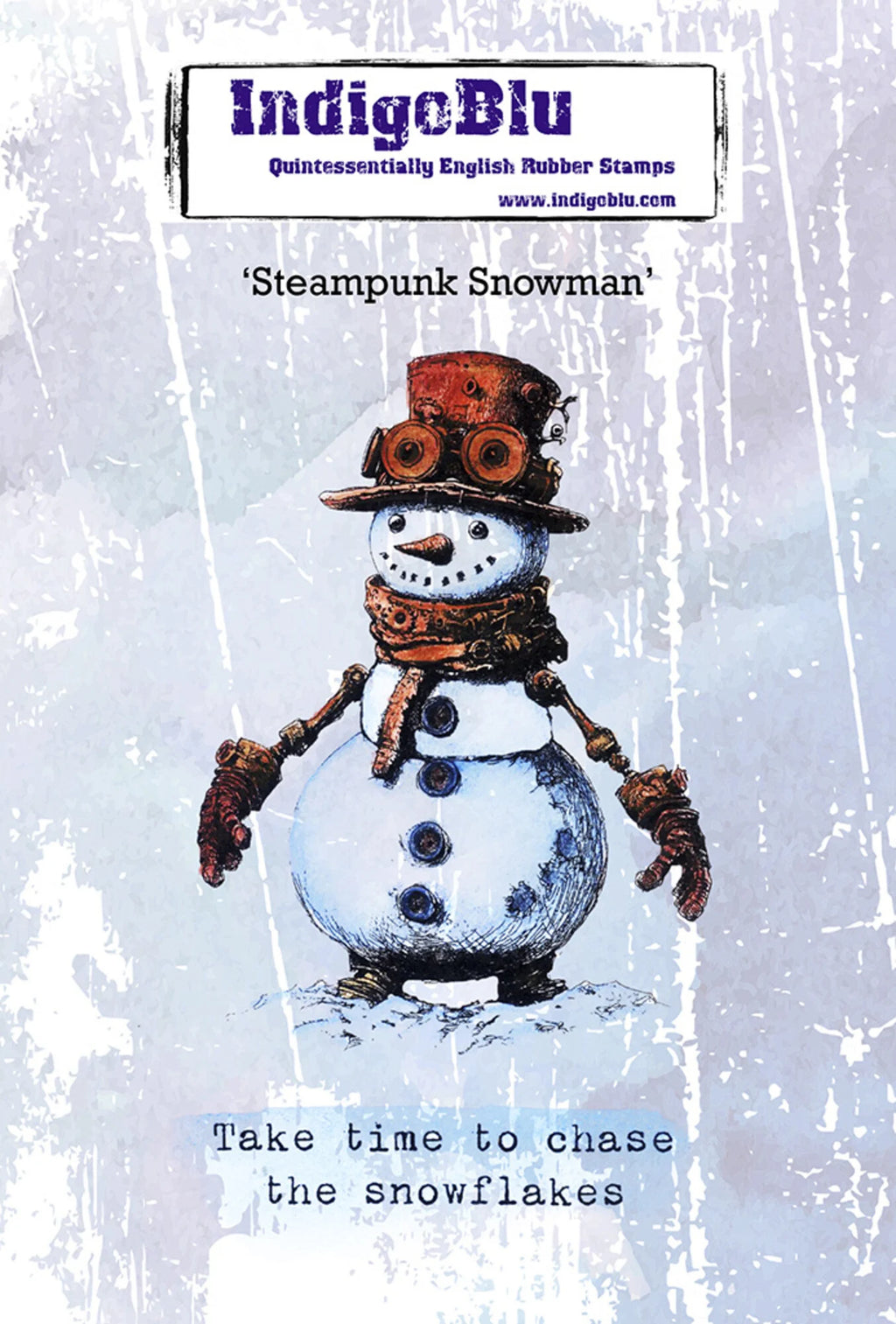 IndigoBlu - A6 Red Rubber Stamp - Steampunk Snowman