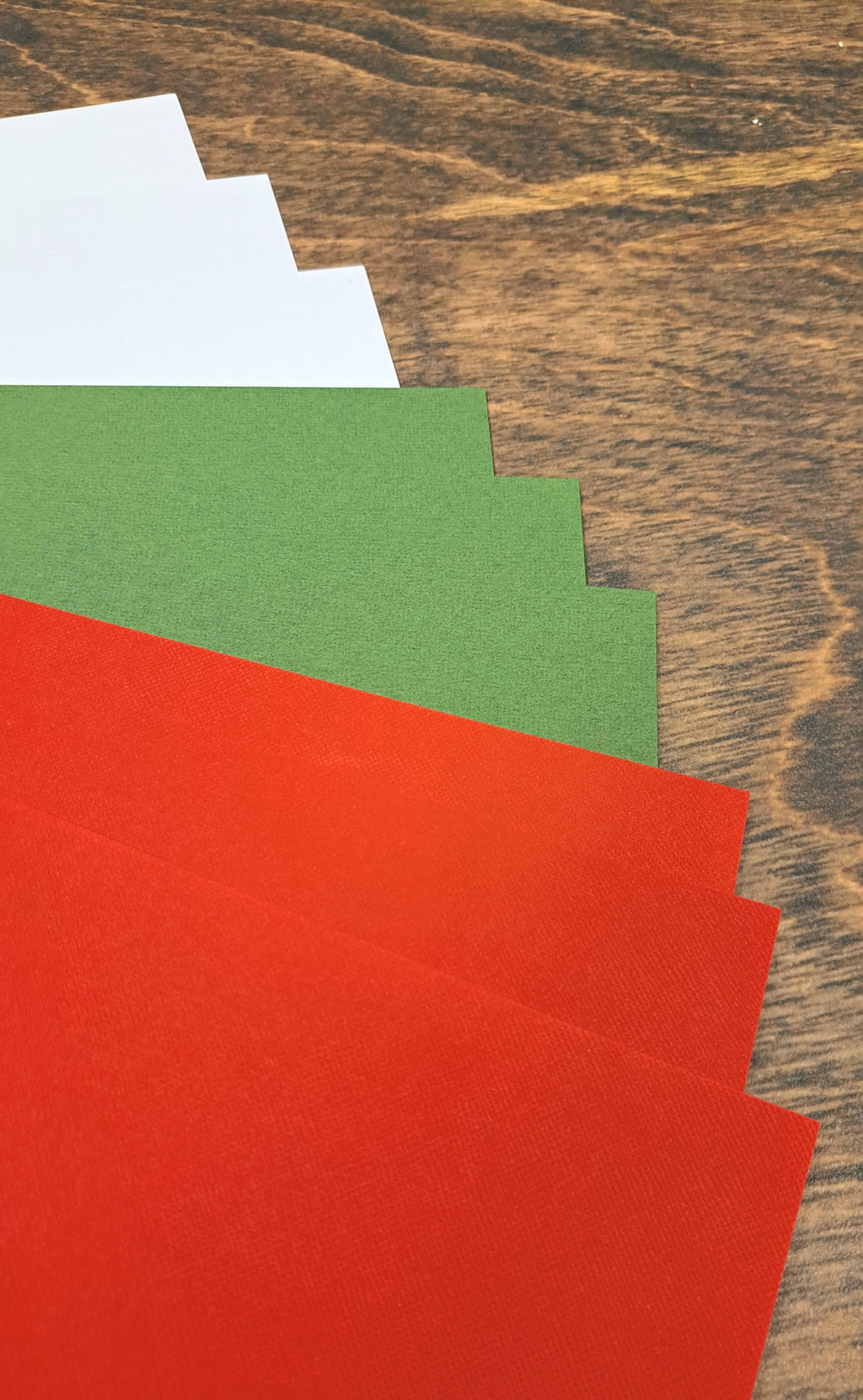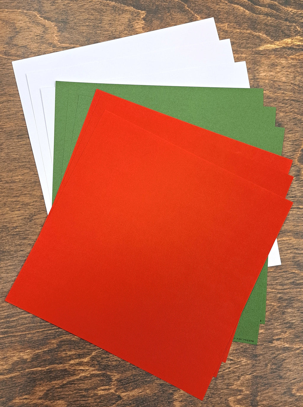 Pakke med 9 kartong i klassiske julefarger - Grønn - Rød - Hvit - 3 stk av hver farge