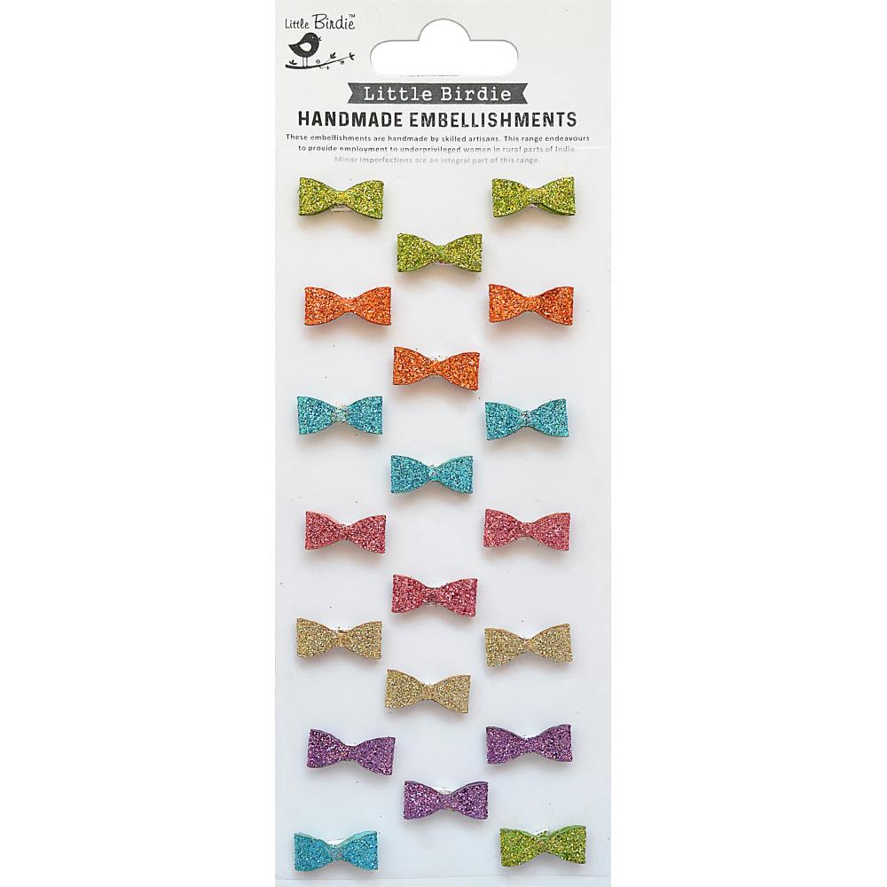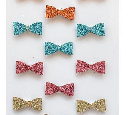 Små sløyfer med glitter som måler ca 2,1 x 1,2 cm.