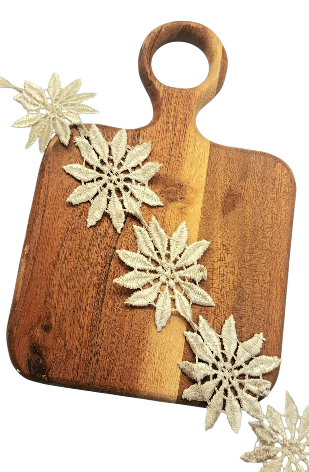 1 meter heklet bånd fra Maya Road. Båndet måler ca 5 cm i diameter.