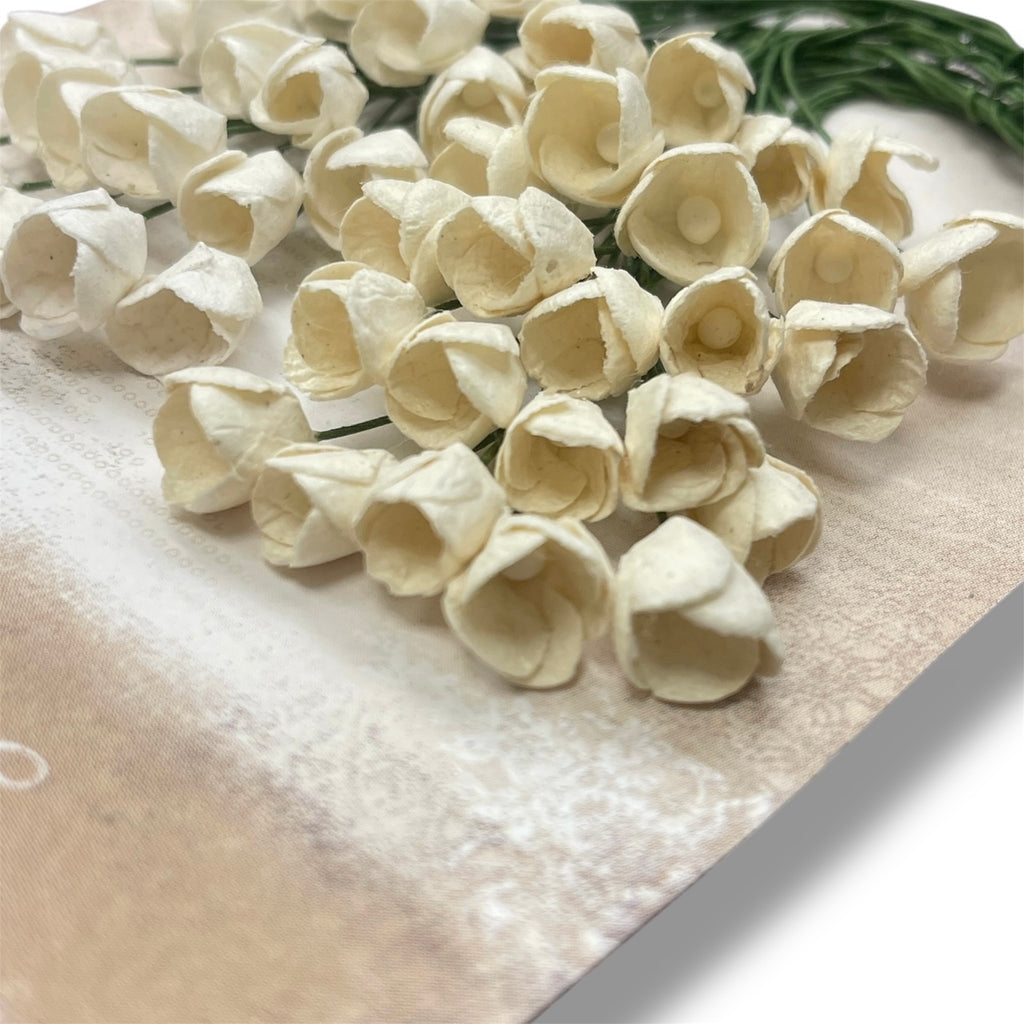 Pakke med tulipaner fra Papirdesign. Pakken inneholder 50 blomster, 25 av hver farge. Tulipanhodet måler ca 0,6cm x 0,6cm.