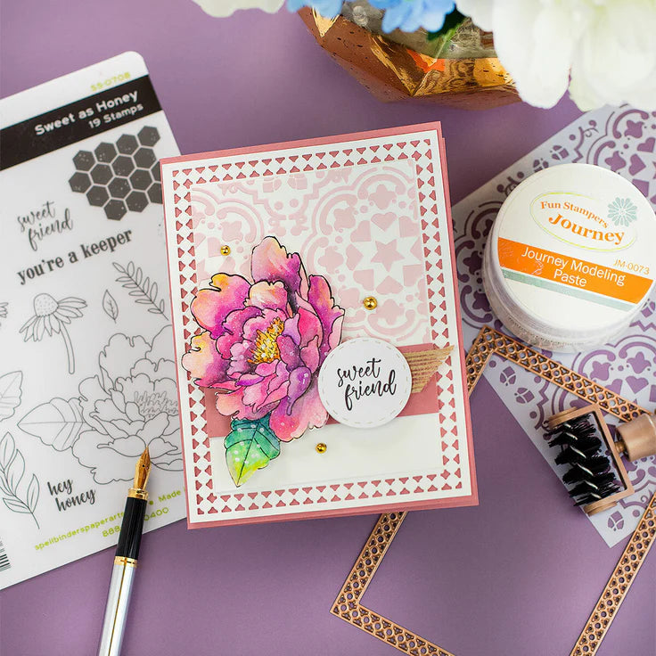 Pakke med selvklebende halvperler fra Spellbinders i gull. Det er 120 stk på brettet som måler ca 3, 4, 5 og 6 mm