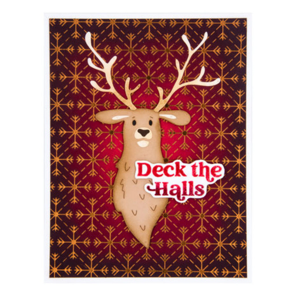 Geo Snowflakes Glimmer Hot Foil Plate is from the Joyful Christmas Collection by Simon Hurley. The plate creates a stunning background of simple snowflake in a geometric-style repeat design. A wonderful backdrop to any A2-sized (USA) (4.25 x 5.5-inch) card front.